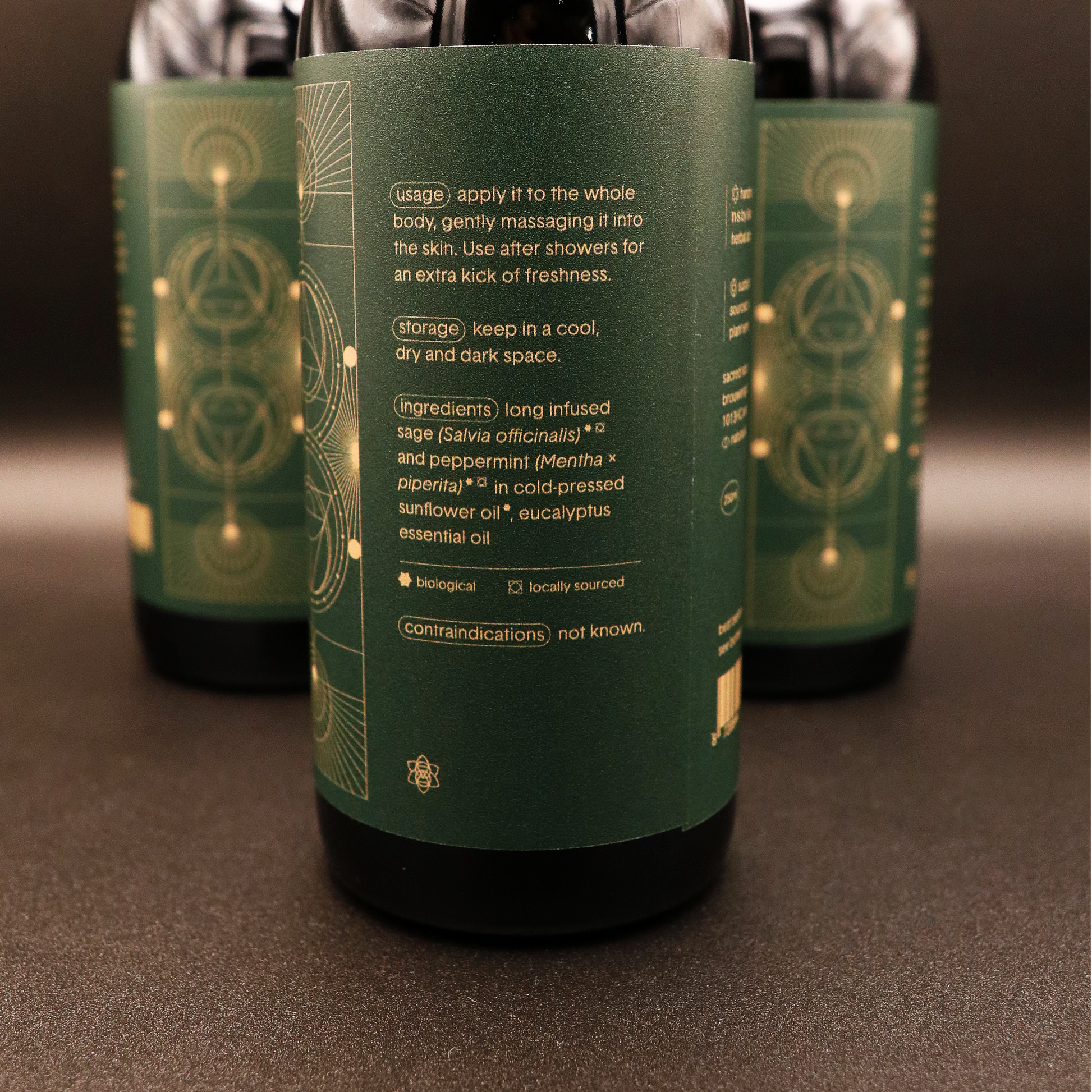 Deze verkwikkende lichaamsolie is de perfecte keuze om nieuwe energie op te doen na een vermoeiende dag. De olie is langdurig doordrenkt met salie en zuivert en beschermt de huid dankzij de antibacteriële en antioxiderende eigenschappen. De aromatische pepermunt zorgt voor een verkoelende frisheid die de zintuigen prikkelt, terwijl de essentiële olie van eucalyptus je poriën opent en je lichaam verkwikt met zijn frisse, stimulerende aroma.